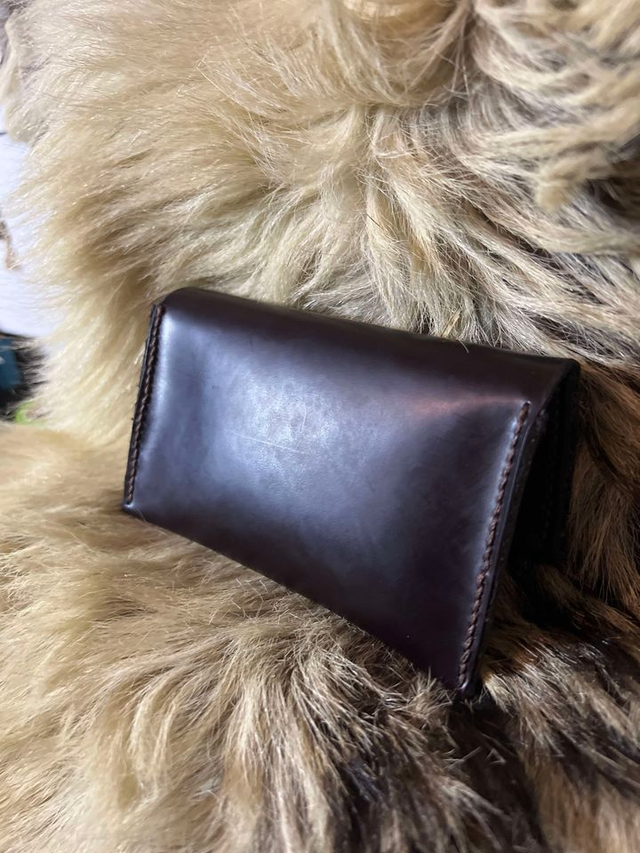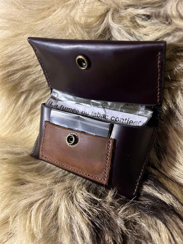 Blague à tabac noir violacé rigide, confectionnée entièrement à la main. Fabrication Française.