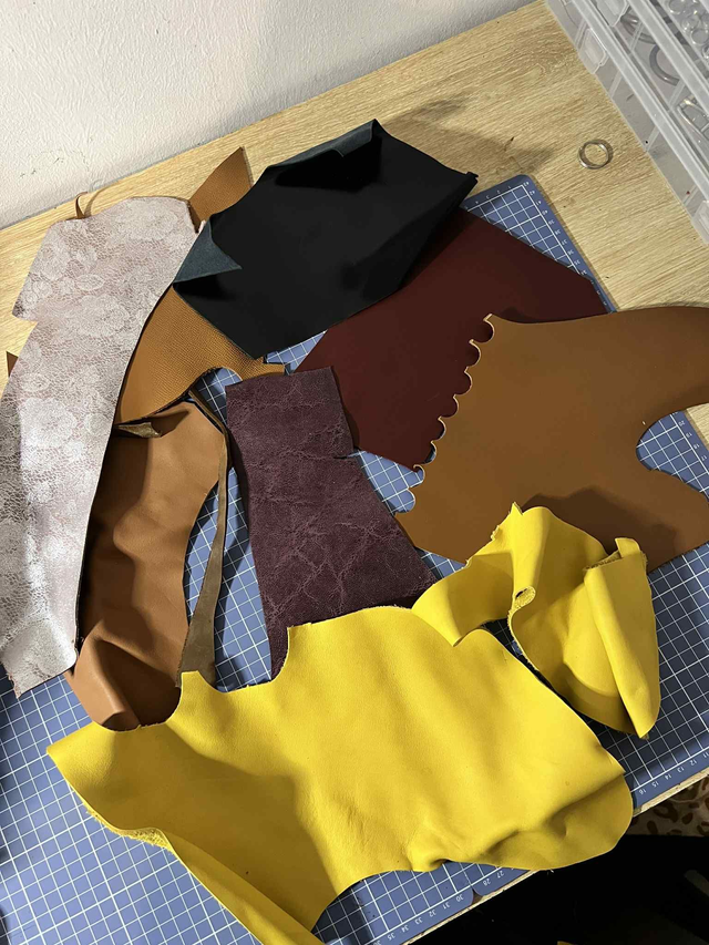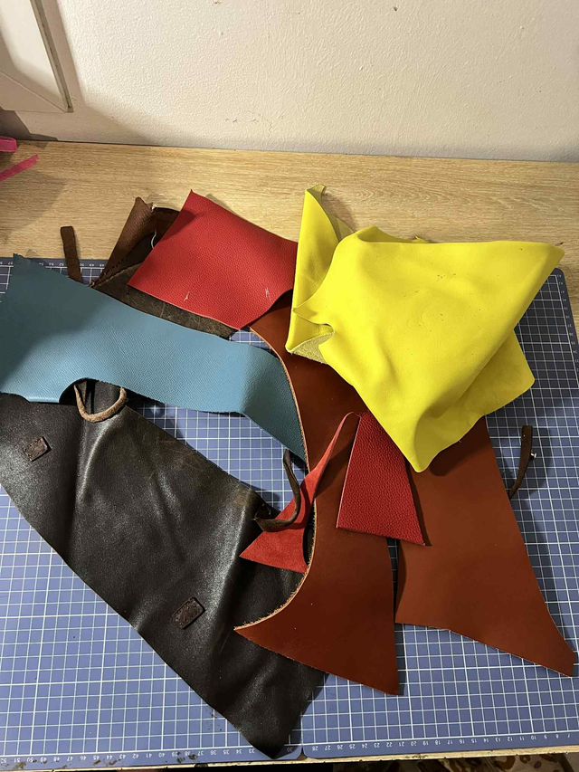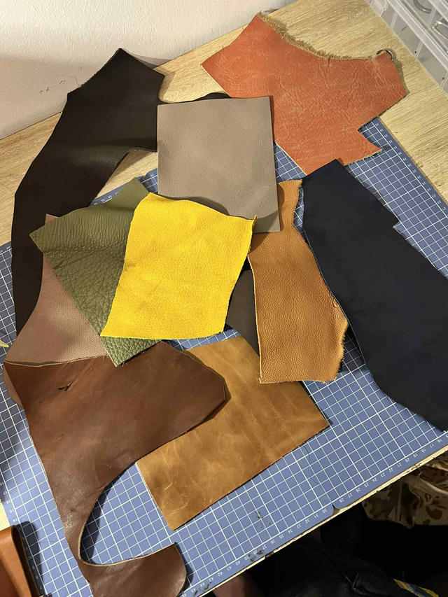 Je vous propose des lots surprises de chutes de cuir allant de 0.500kg à 5kg. Cuirs unis, fantaisies ou tannages végétal, sur quoi allez vous tomber ?