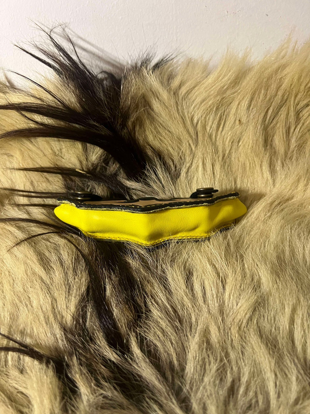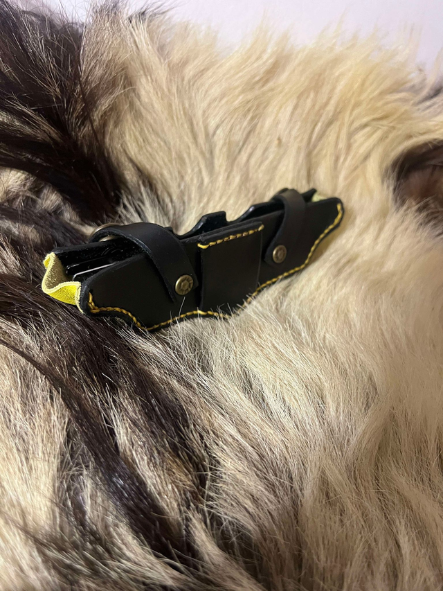 Les couleurs de l'étui son celles du logo original, noir et jaune. Pièce principale noir, logo couleur cuir naturel, doublure et surpiqûre jaune.