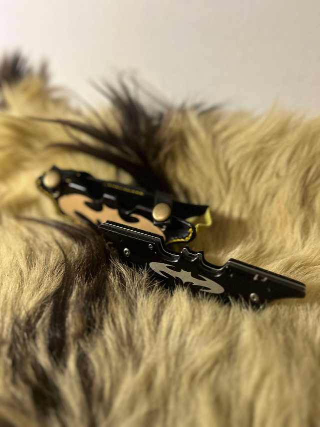 Etui de couteau Batman réalisé sur mesure, teint et assemblé à la main. Double fermoir pressions avec un passant ceinture.
