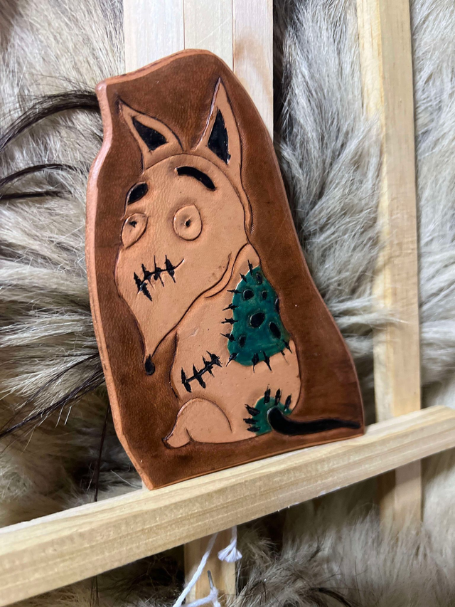 Plaquette représentant Frankenweenie. Motif et teinte entièrement fait à la main.