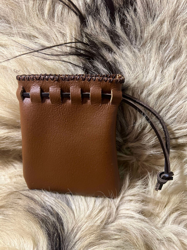 Reproduction historique d'une petite pochette scandinave, retrouvée dans les fouilles archéologiques d'Haithabu, en Allemagne.