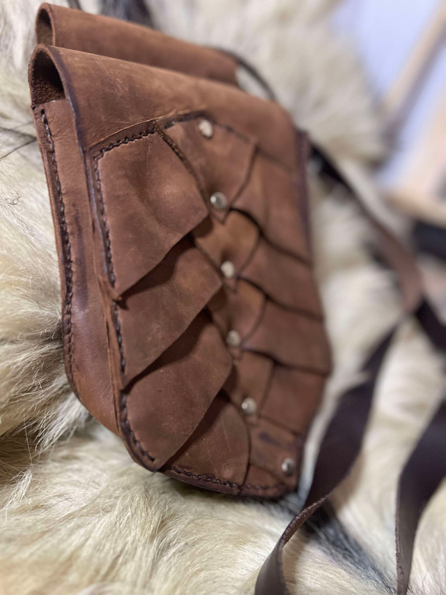 Laissez-vous tenter par son look unique et ses écailles de dragons sur l'avant. Composée de 22 pièces de cuir au total, assemblée entièrement à la main.