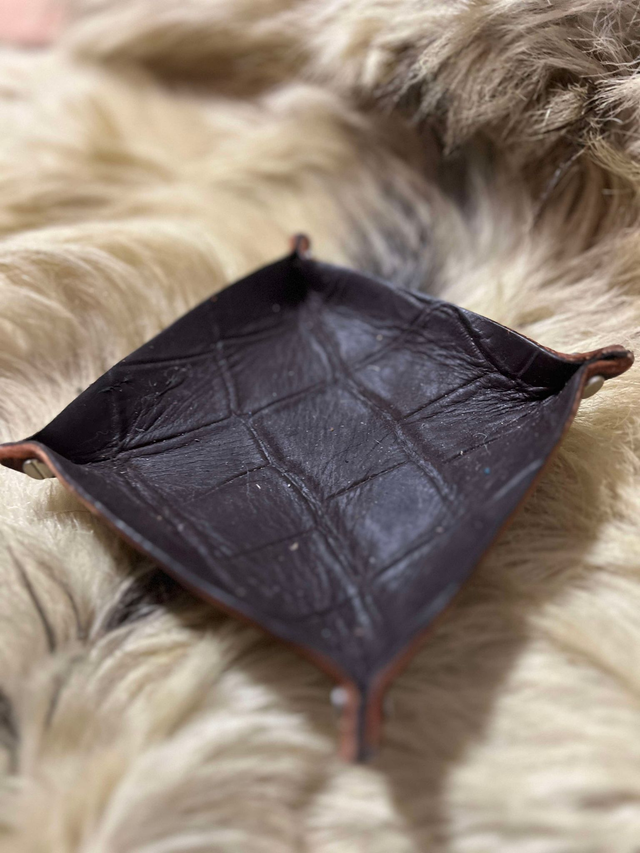 Vide poche cuir avec doublure cuir fantaisie imitation cuir reptile.
