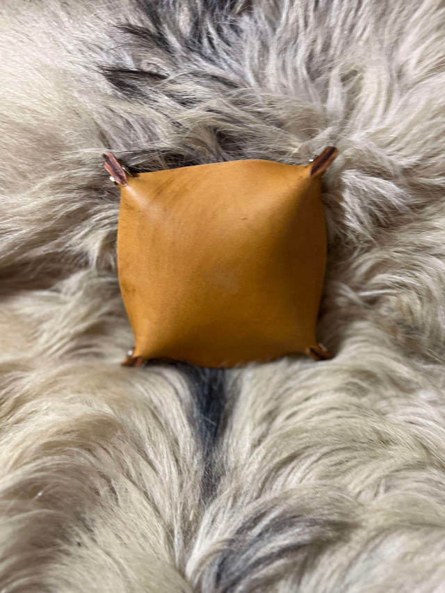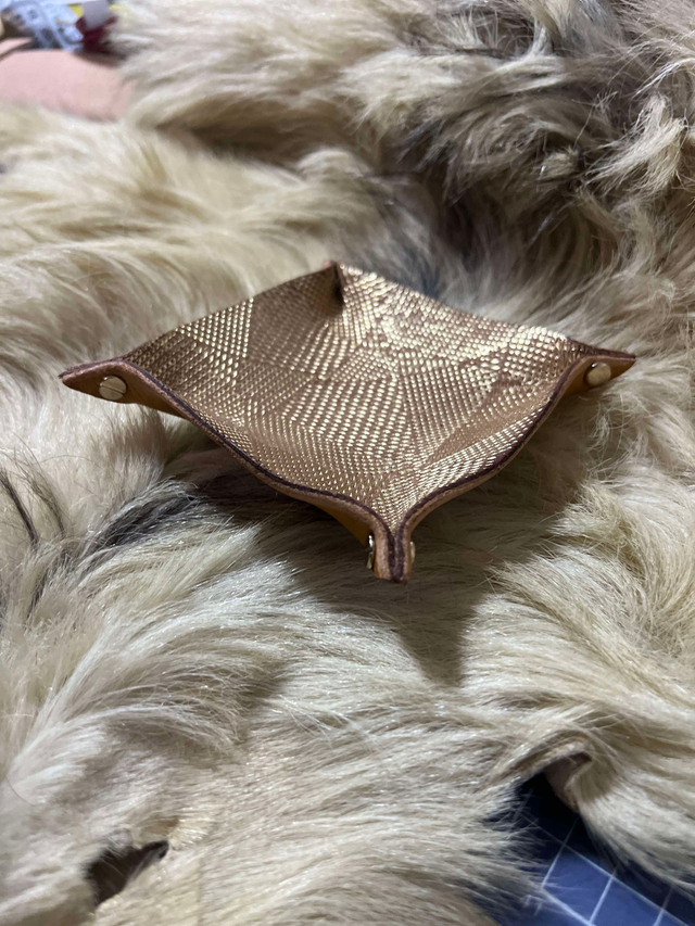 Vide poche cuir avec doublure cuir fantaisie or brillant.