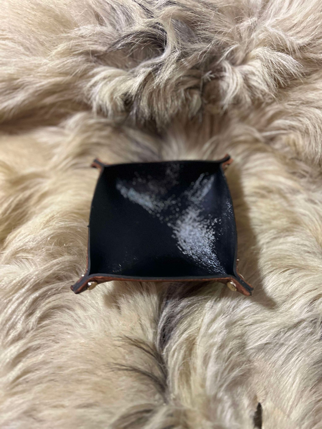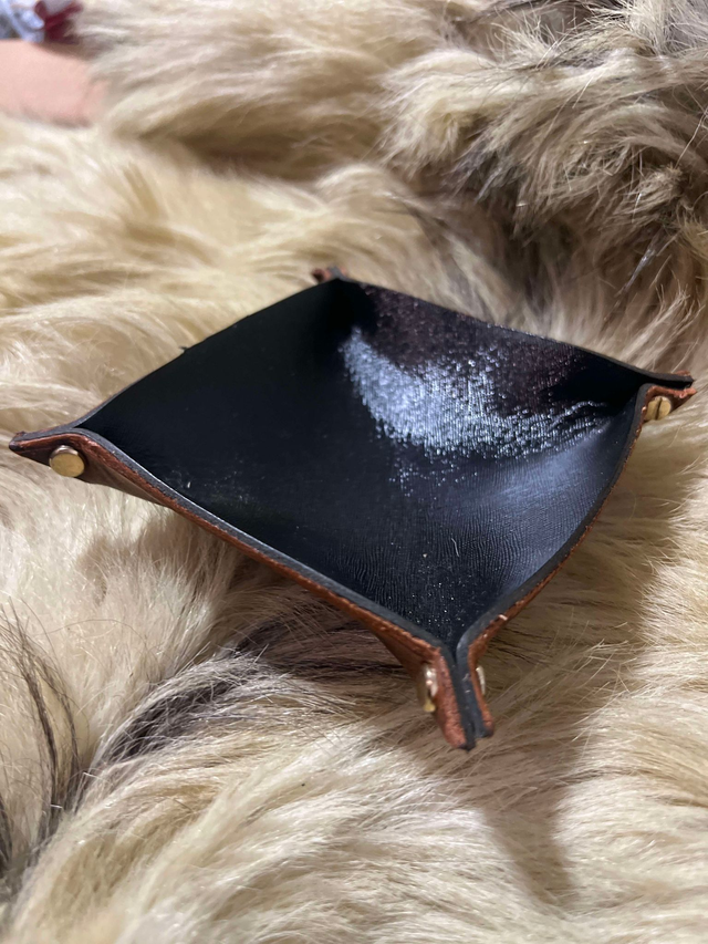 Vide poche cuir avec doublure cuir fantaisie noir brillant.