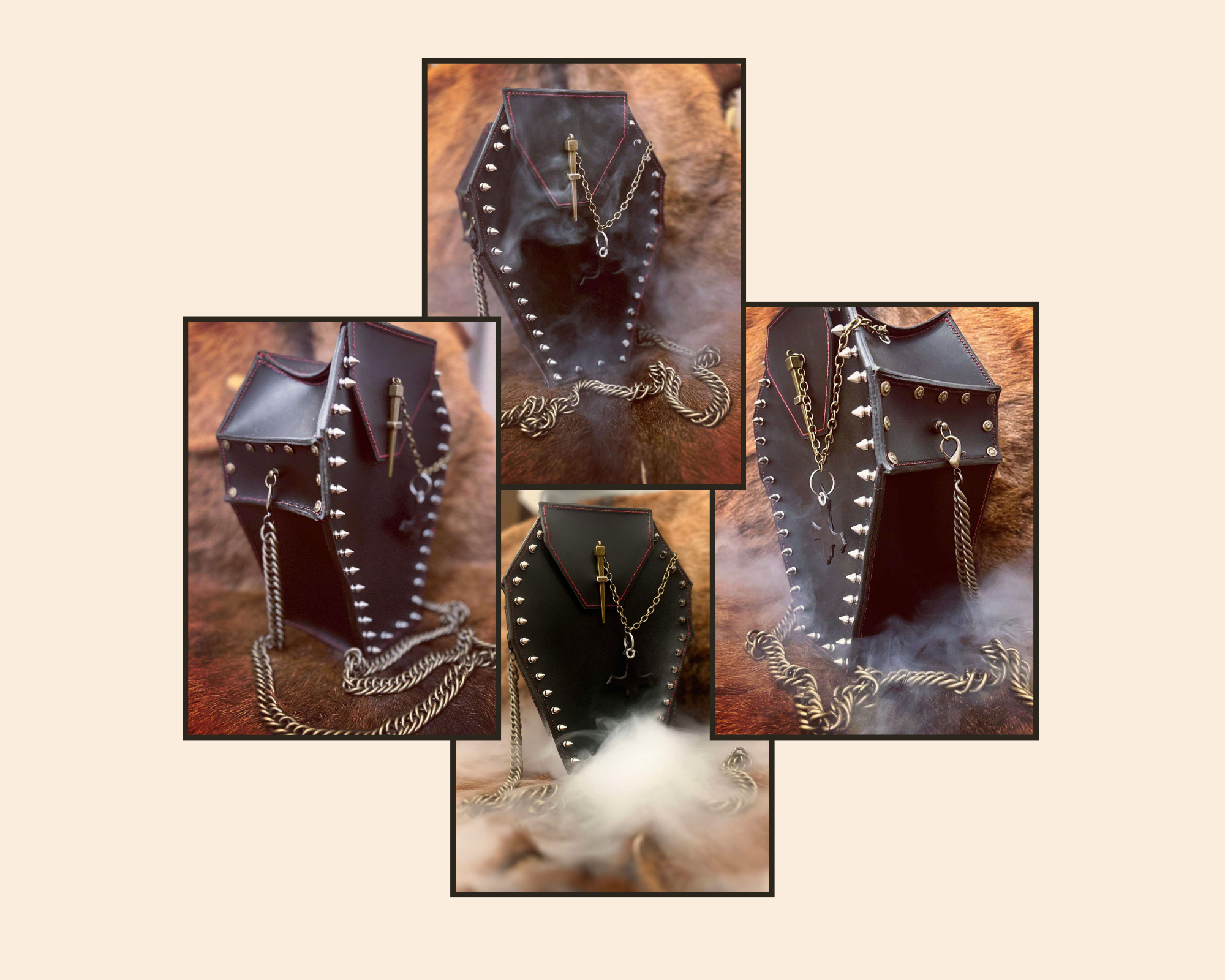 J'ai pu entre autre réaliser deux petits supports en attache ceinture pour y accueillir deux œufs de dragons en résine, une fois fermé celui-ci forme une couronne de pique sur le haut faisant penser aux piques que le dragon peut avoir sur le sommet de son crâne.